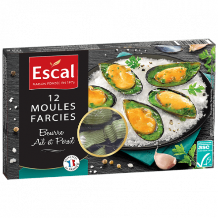 Cooked mussel meat MSC certified (Mytilus chilensis*) 55%, butter 33%, rehydrated garlic 6%, parsley 3%, shallot, cooking salt, pepper.