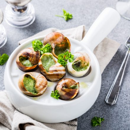 Notre recette est préparée à base de l’espèce Helix pomatia, aussi appelée escargot de Bourgogne, la variété la plus appréciée des connaisseurs pour sa chair tendre, délicate et parfumée